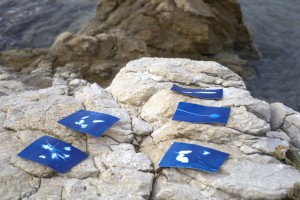 The workshop she organized gathered 7 participants that were invited to experience water as something shared across human and non-human and to reflect on care practices through multisensory engagement with nature and the sea. The workshop started with a multisensory silent walk in Marjan Park to the seashore where the participants did simple reflection exercises and discussed the notion of “hydrocommons” coined by Astrida Neimanis. After that they were able to translate sensory and emotional impressions into a material form through making cyanotypes, based on the natural materials collected during the workshop. This was a highlight for most of the participants, as it was the first time for them learning that process. The workshop was finalized with a communal tea ritual using local herbs, sharing thoughts and reflections.