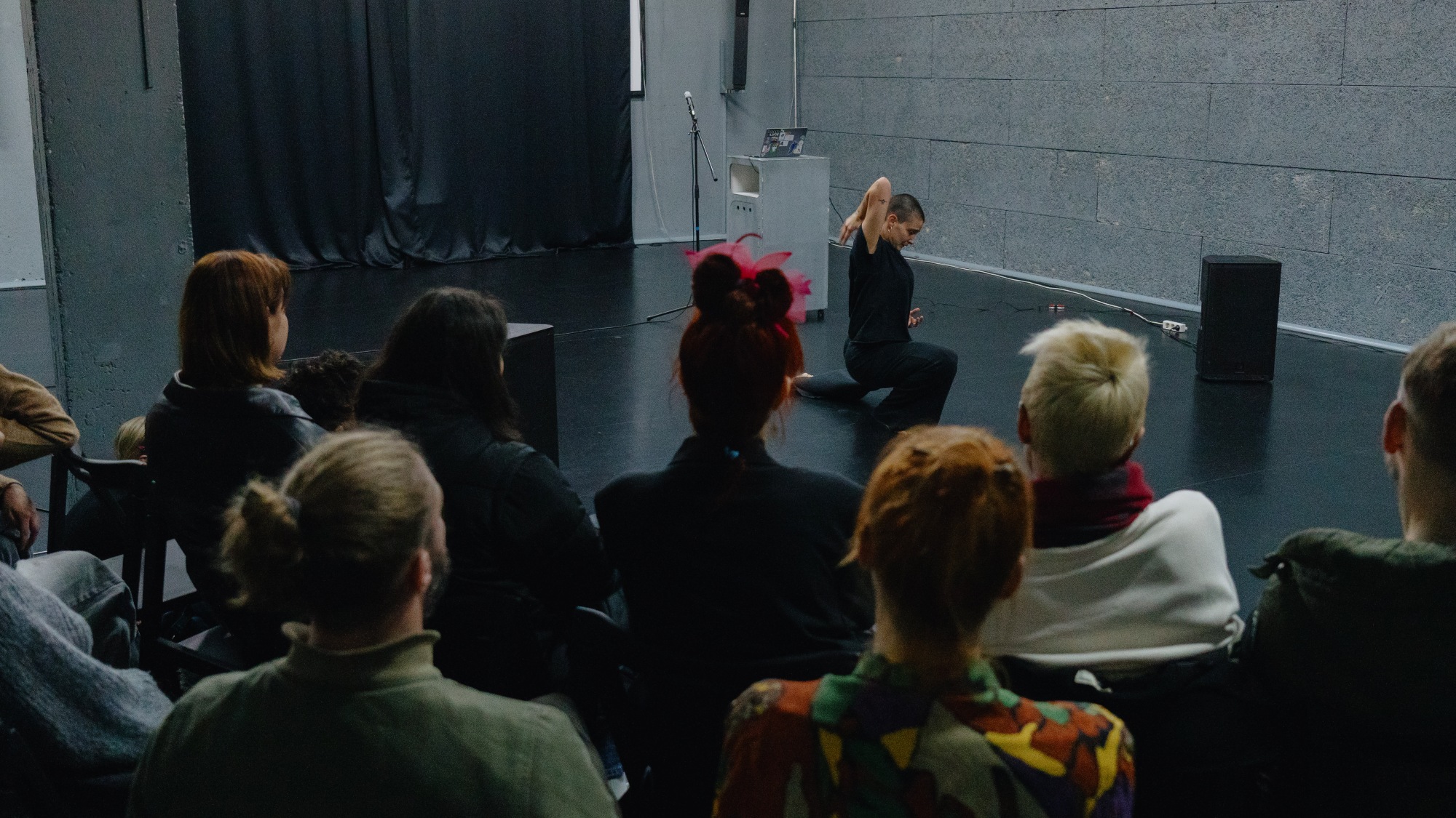 Their intensive work during the 4 weeks culminated in a public performance during the Weekend of Contemporary Dance in Split (14-16 November 2025). As part of the festival, Eleonora also led a group workshop – improvisation and instant composition laboratory that aimed to explore qualities in and with the body, that can reflect more than just what it already knows about itself. This approach, of sharing their research not only through the performance, but also through a free participatory activity open to anyone, without prior knowledge, is also reflected in their artistic research, as they are interested in developing dance works that are not self-referential and aimed solely at aesthetic pleasure but involve people in experiences of sharing, encounter, reflection and care.